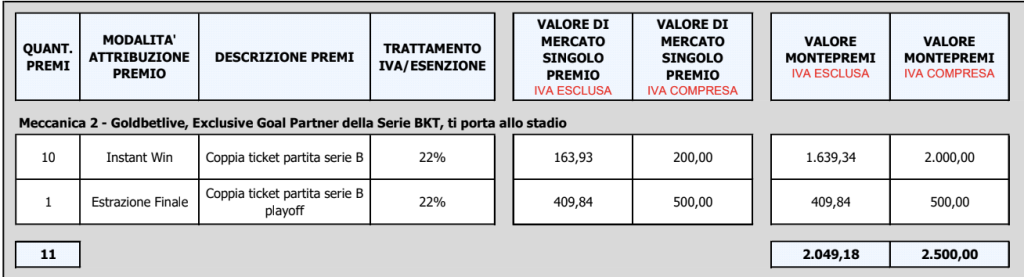 Il montepremi totale del Concorso a Premi e delle singole Meccaniche è indicato nell’allegato al presente Regolamento.